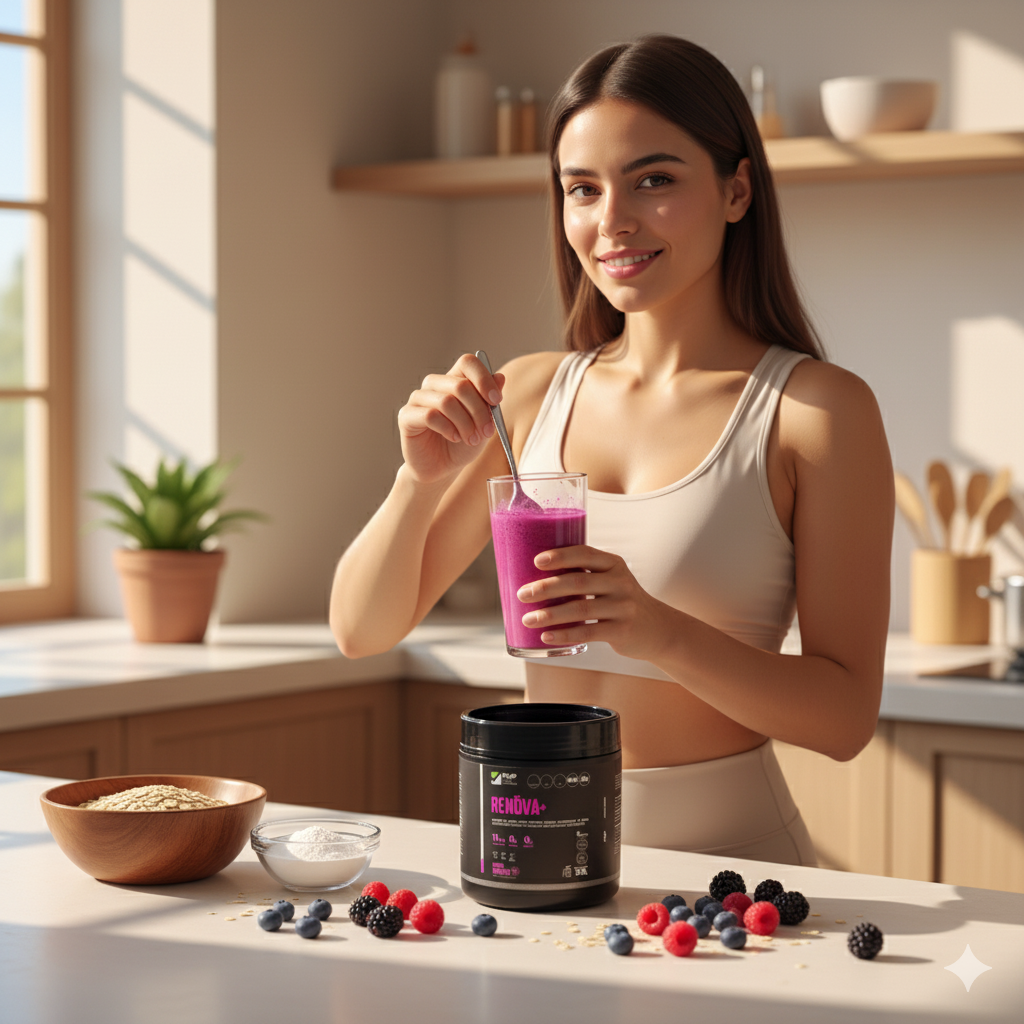 No 🚫, Renöva+ es libre de azúcar y grasa, perfecta para rutinas saludables o planes de alimentación equilibrados.
